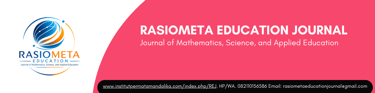 RASIOMETA EDUCATION JOURNAL merupakan jurnal ilmiah yang didedikasikan untuk mempublikasikan hasil penelitian dan kajian akademik di bidang pendidikan matematika, pendidikan sains, serta pendidikan terapan. Jurnal ini menjadi wadah bagi para akademisi, peneliti, guru, dan praktisi pendidikan untuk mendiseminasikan gagasan, temuan empiris, inovasi pembelajaran, serta pengembangan model dan media pembelajaran yang relevan dengan perkembangan ilmu pengetahuan dan teknologi. Jurnal ini memuat artikel hasil penelitian, penelitian dan pengembangan (R&D), studi literatur, maupun kajian konseptual yang berkontribusi terhadap peningkatan kualitas pembelajaran matematika dan sains di berbagai jenjang pendidikan.